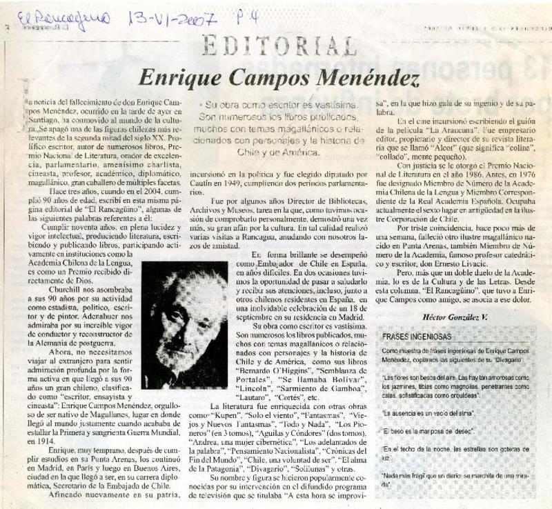 Autores chilenos - Presencia de Portales - Campos Menéndez, Enrique