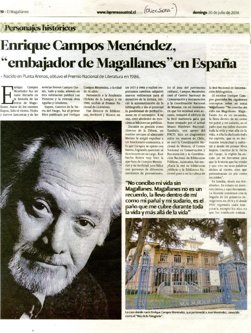 Autores chilenos - Campos Menéndez, Enrique - entrevista - Araucanía