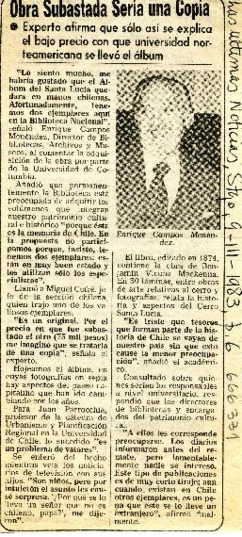 Universitarios no conocen obras de Enrique Campos M. [artículo].