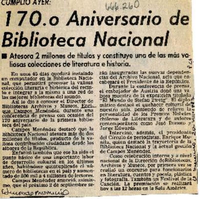 170.o aniversario de Biblioteca Nacional. [artículo]