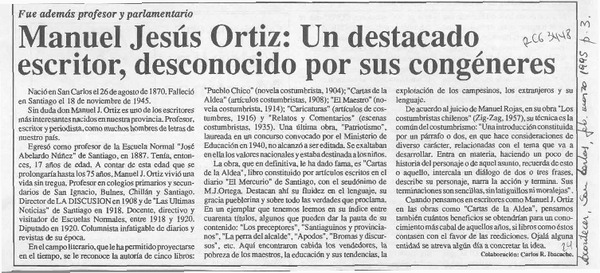 Manuel Jesús Ortiz, un destacado escritor, desconocido por sus congéneres [artículo] Carlos R. Ibacache.