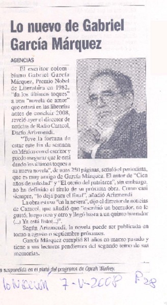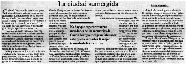 Se inicia millonaria disputa por memorias de García Márquez [artículo] Claudio Aguilera.