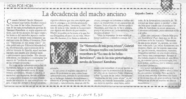 "García Márquez es mejor ser humano que escritor" [artículo] Margarita Serrano.