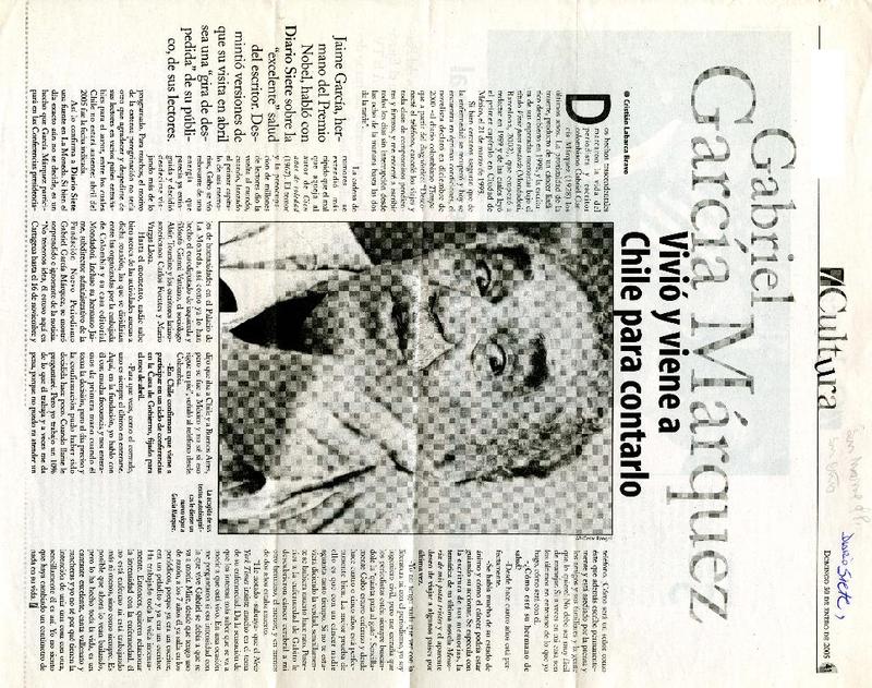 "Gabo no me caía bien" (entrevista) [artículo] Myriam Audiffred.