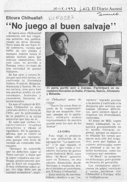 Poeta mapuche viajó a Holanda [artículo].