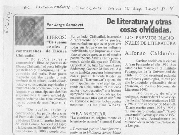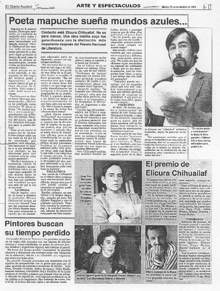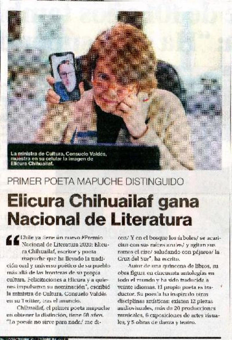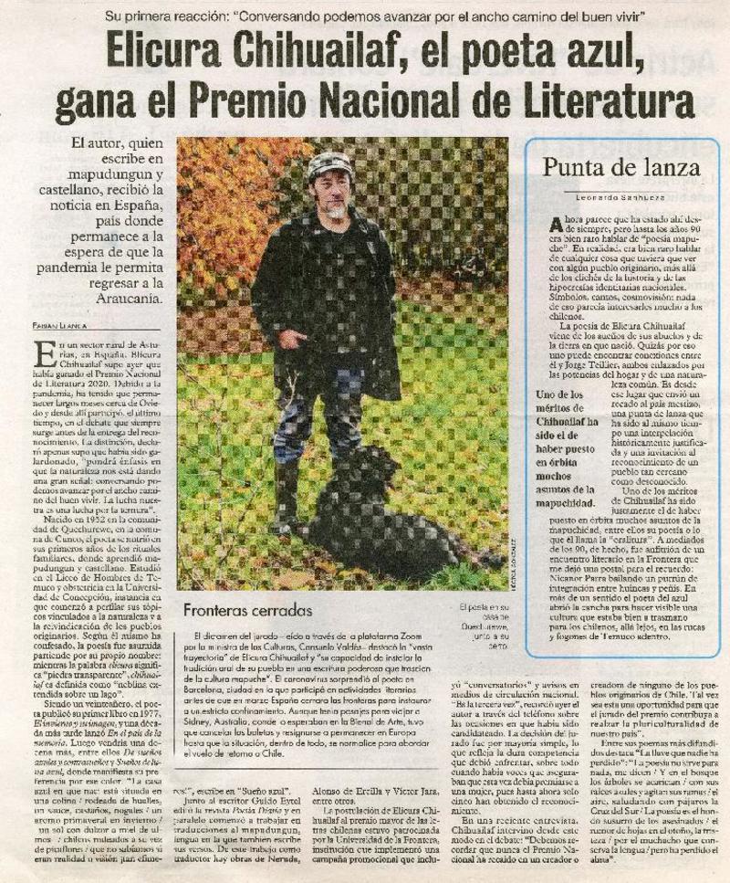 Elicura Chihuailaf, el poeta azul, gana el Premio Nacional de Literatura [artículo] Fabián Llanca.