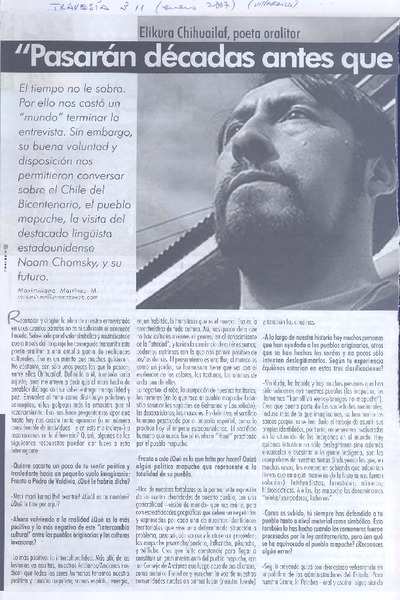 Pasarán décadas antes que la sociedad chilena asuma su identidad (entrevista) [artículo] Maximiliano Martínez M.