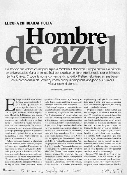 Poeta mapuche sueña mundos azules -- [artículo].
