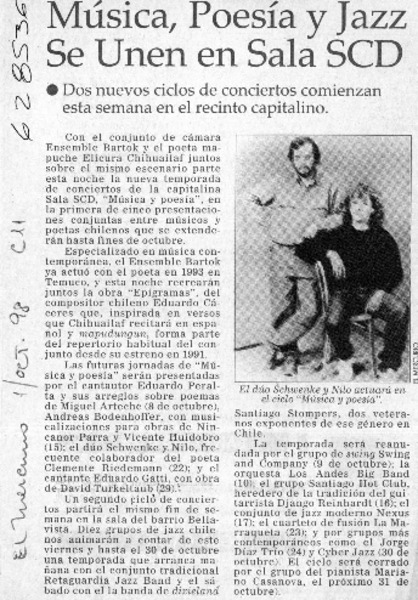 Música, poesía y jazz se unen en sala SCD [artículo]