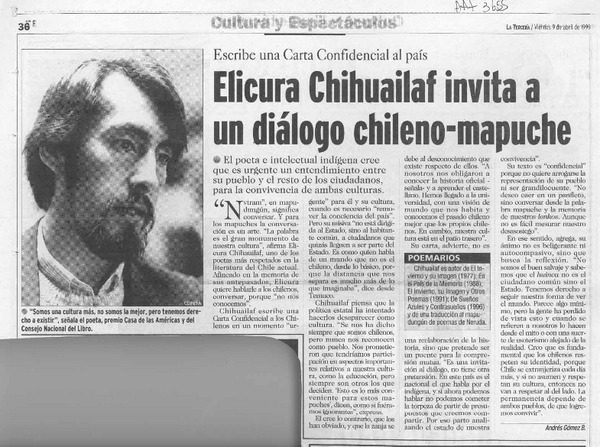 Autores chilenos - Chihuailaf, Elicura - Carta confidencial a los chilenos