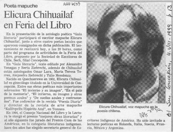 El Poeta bilingüe Elicura Chihuailaf [artículo].