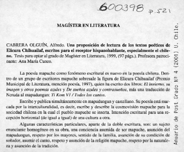 Magíster en literatura [artículo]