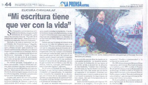 "Mi escritura tiene que ver con la vida" [artículo].