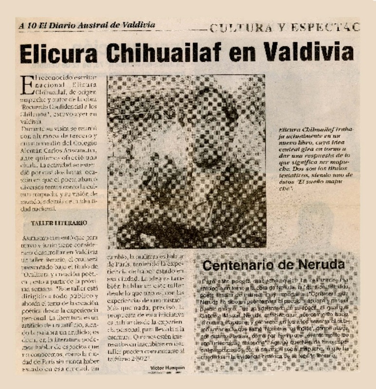 Elicura Chihuailaf en Valdivia [artículo] Víctor Huaquín.