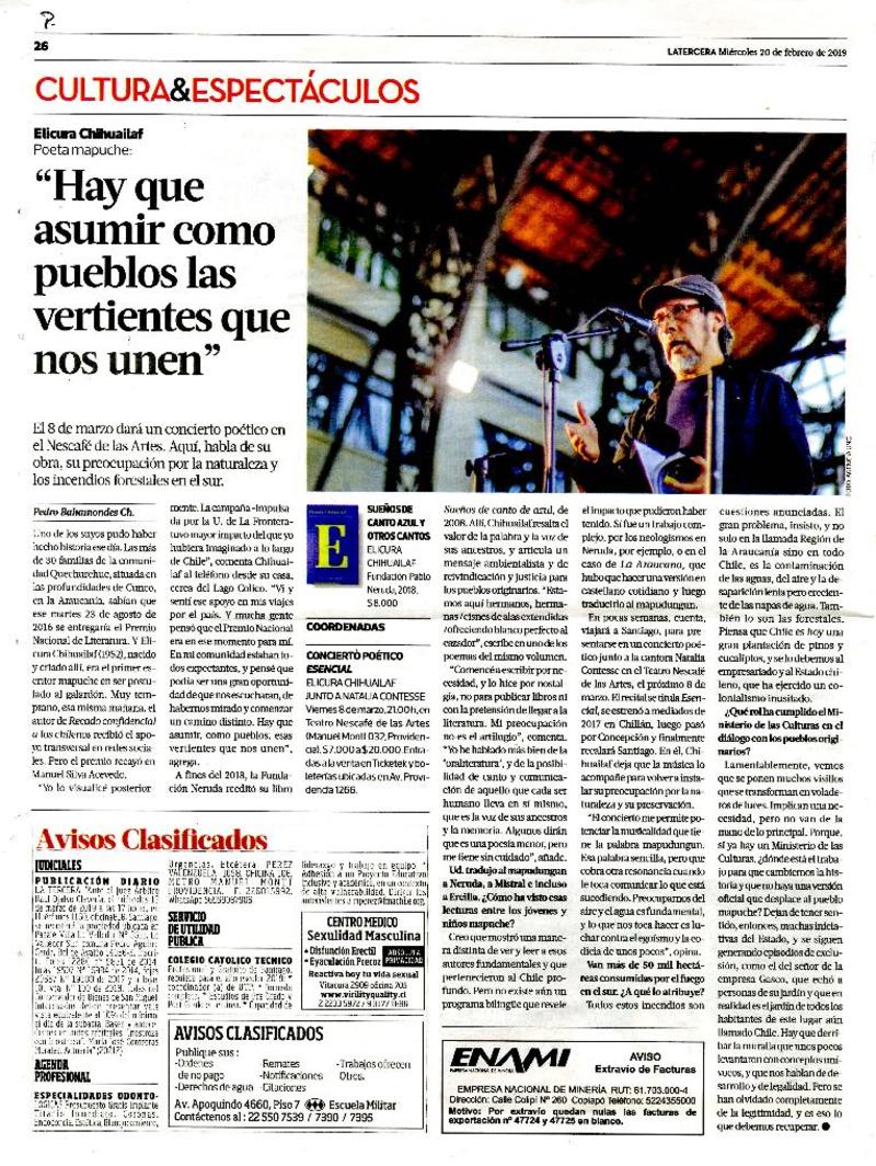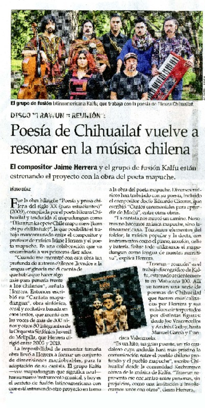 Poesía de Chihuailaf vuelve a resonar en la música chilena [artículo] Iñigo Díaz.