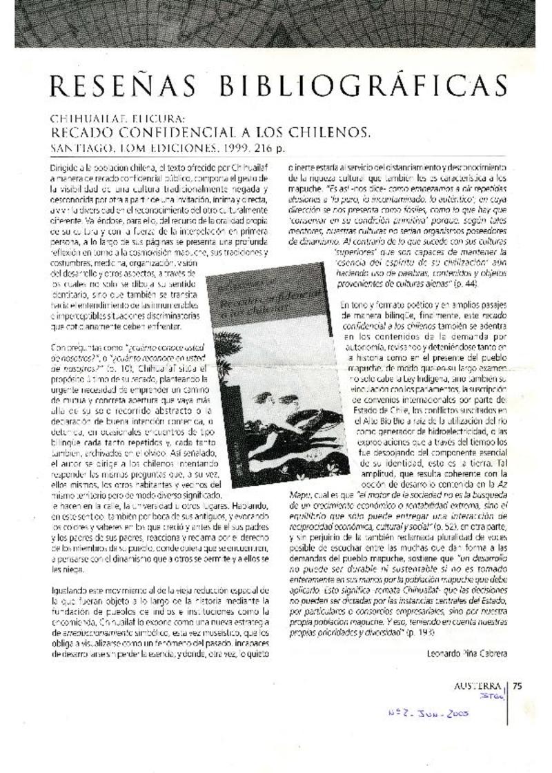 Recado confidencial a los chilenos [artículo]Leonardo Piña Cabrera.