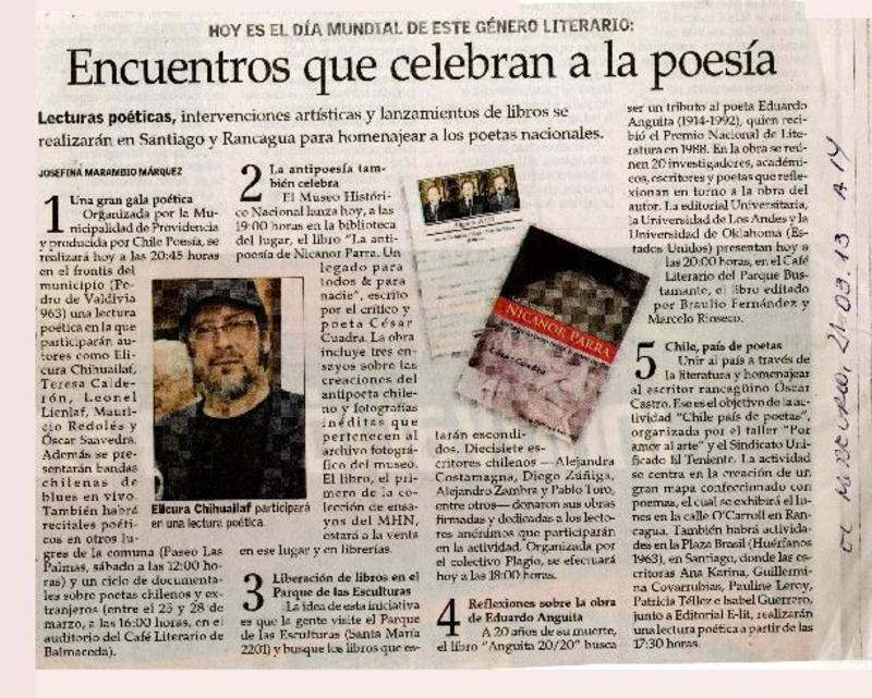 Encuentros que celebran a la poesía [artículo] Josefina Marambio Márquez.