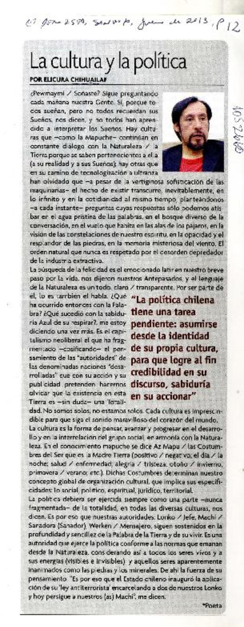 La cultura y la política [artículo] Elicura Chihuailaf