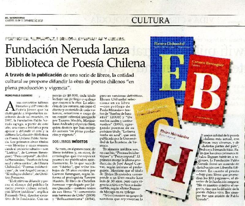 Fundación Neruda lanza biblioteca de poesía chilena [artículo] Pedro Pablo Guerrero.