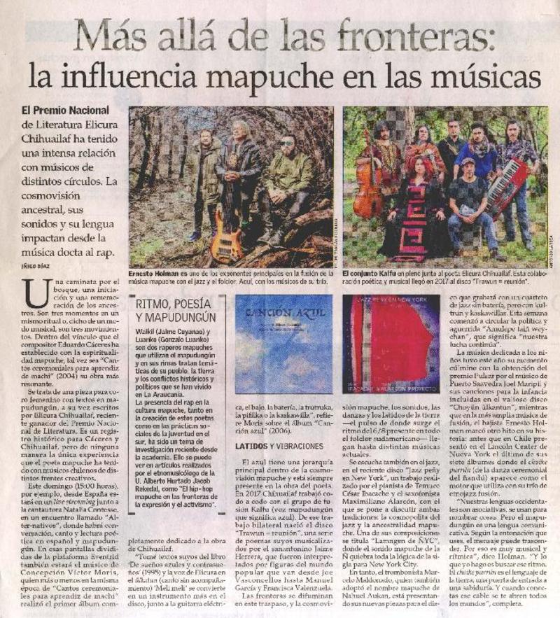 Más allá de las fronteras : la influencia mapuche en las músicas [artículo] Iñigo Díaz.
