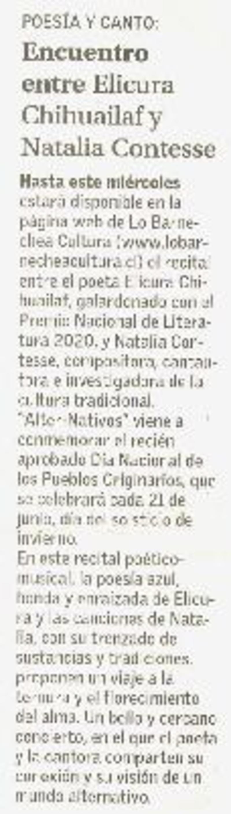 Encuentro entre Elicura Chihuailaf y Natalia Contesse [artículo].