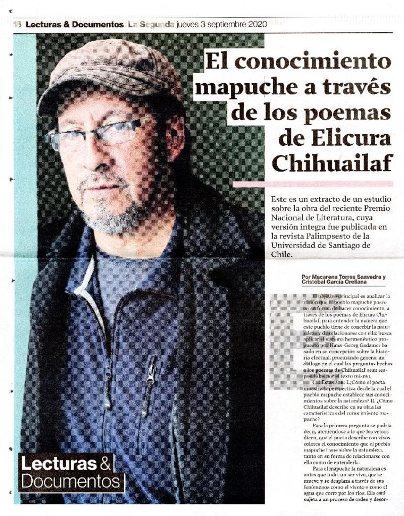 El conocimiento mapuche a través de los poemas de Elicura Chihuailaf [artículo] Macarena Torres Saavedra.