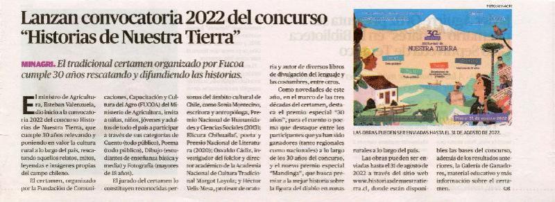 Lanzan convocatoria 2022 del concurso "Historias de Nuestra tierra" [artículo].