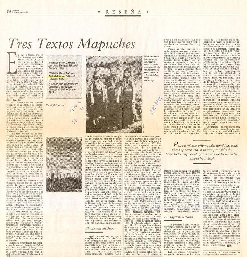 Tres textos mapuches [artículo] Por Rolf Foerster.
