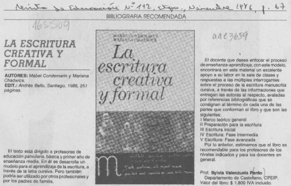 La escritura creativa y formal [artículo] Sylvia Valenzuela Pardo.