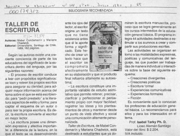 MEDINA, ALEJANDRA - GALDAMES, VIVIANA - CONDEMARIN, MABEL - TALLER DEL LENGUAJE