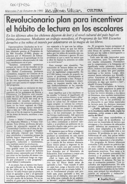 Revolucionario plan para incentivar el hábito de lectura en los escolares [artículo] Angélica Rivera.