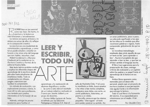 Leer y escribir, todo un arte [artículo] Osvaldo Caro.
