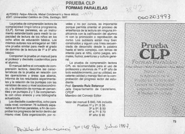 ALLIENDE, FELIPE - CONDEMARIN, MABEL - MILICIC, NEVA - PRUEBA CLP FORMAS PARALELAS