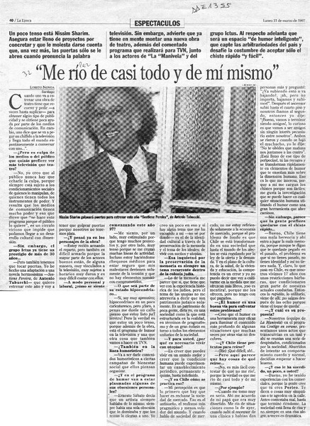"Me río casi de todo y de mí mismo" [artículo] Loreto Novoa.