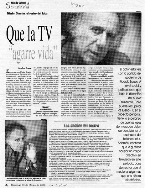 Que la TV "agarre vida" [artículo] Catalina Araos