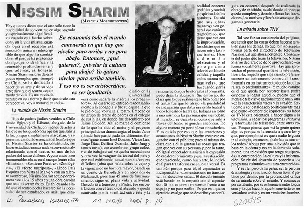 Nissim Sharim [artículo] Marcela Morgheinstern