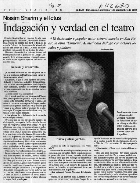 Indagación y verdad en el teatro [artículo] Gustavo Sáez S.