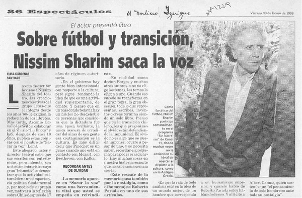 Sobre fútbol y transición, Nissim Sharim saca la voz [artículo] Elisa Cárdenas.