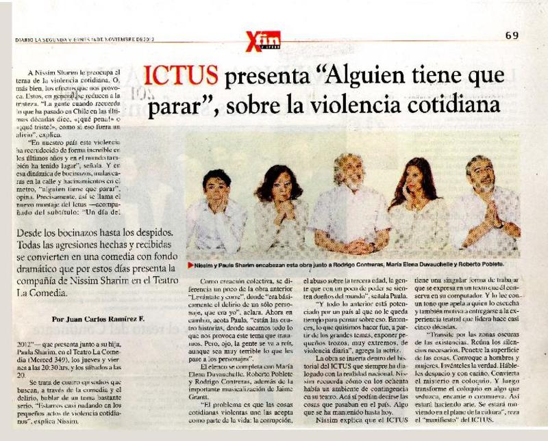 ICTUS presenta "Alguien tiene que parar", sobre la violencia cotidiana [artículo] Juan Carlos Ramírez F.