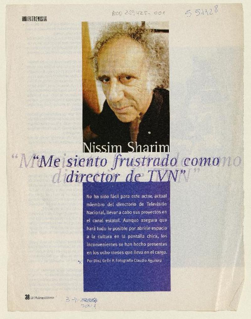 Nissim Sharim, "Me siento frustrado como director de TVN" [artículo] Dina Gelin