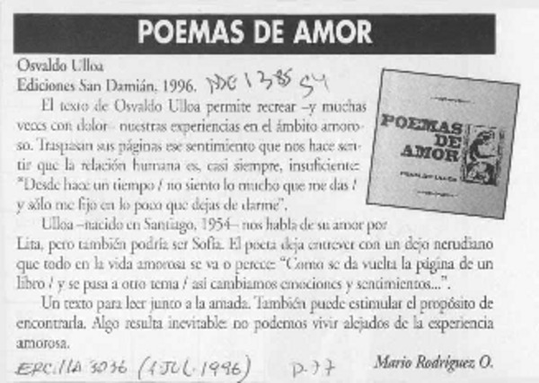 ULLOA, OSVALDO - POEMAS DE AMOR