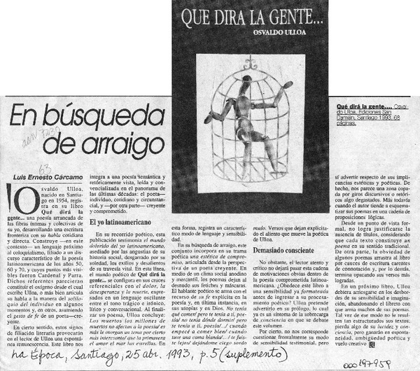 En búsqueda de arraigo [artículo] Luis Ernesto Cárcamo.