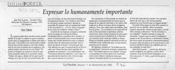 Expresar lo humanamente importante [artículo] Teresa Calderón.