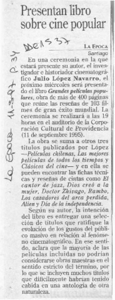 Lanzan libro sobre filmes más populares en Chile [artículo].