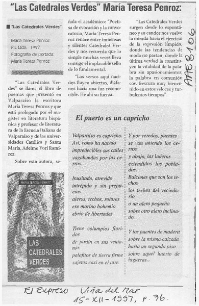 Lanzan libro de poemas "Las catedrales verdes" [artículo].