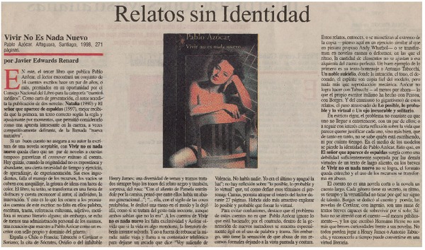 Relatos sin identidad [artículo] Javier Edwards Renard.