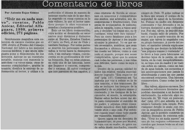 "Vivir no es nada" [artículo] Antonio Rojas Gómez.