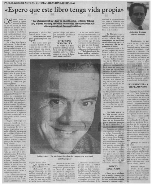 "Espero que este libro tenga vida propia" [artículo] Jorge Abaloso Aravena.