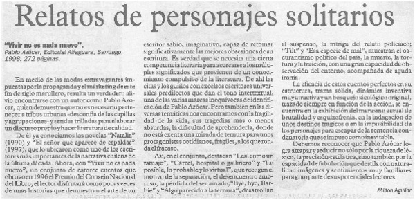 Relatos de personajes solitarios [artículo] Milton Aguilar.