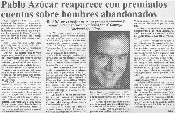 Pablo Azócar reaparece con premiados cuentos sobre hombres abandonados [artículo] J. I. V.